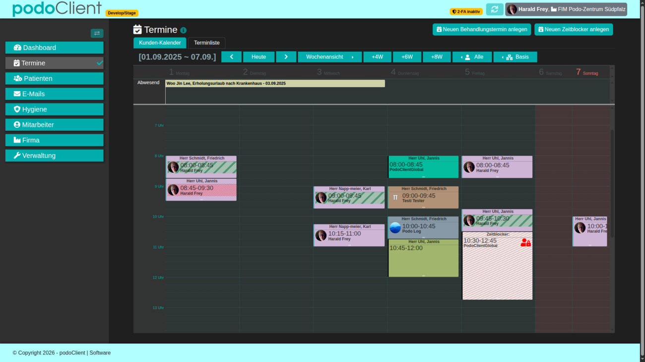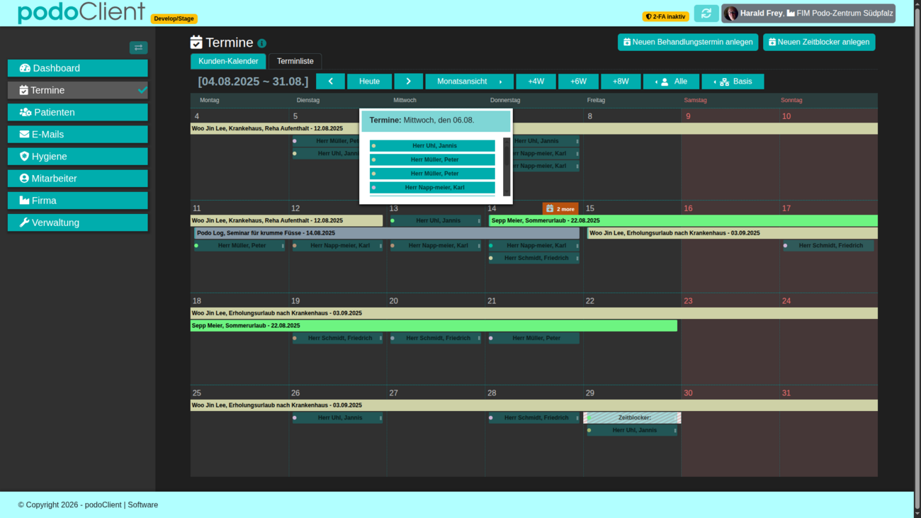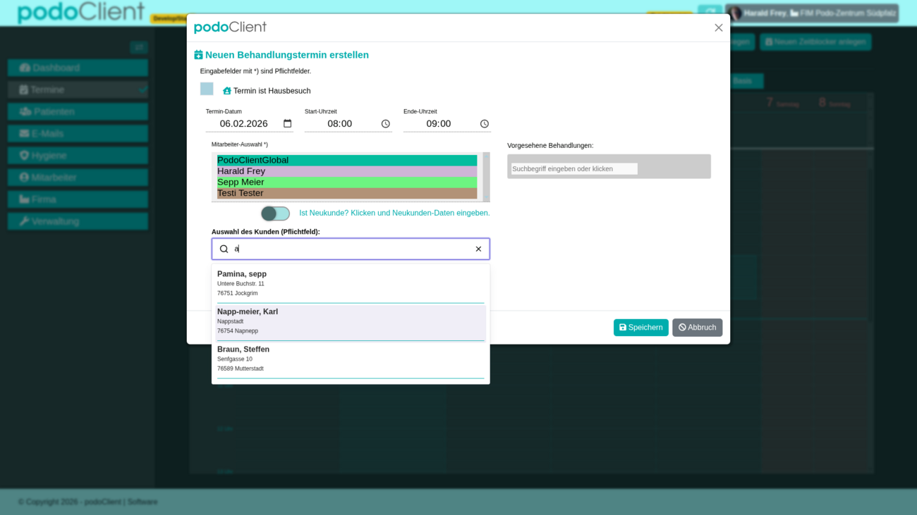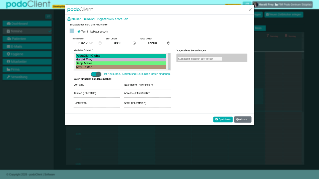 Der podoClient Terminplaner ist vollständig in die Praxisverwaltung integriert.
