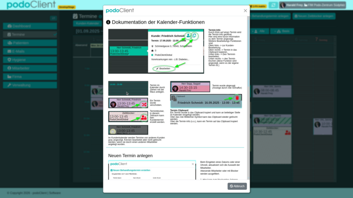 podoClient unterstützt Sie nicht nur bei der Terminplanung, sondern als vollständige Praxisverwaltungssoftware für Podologie: